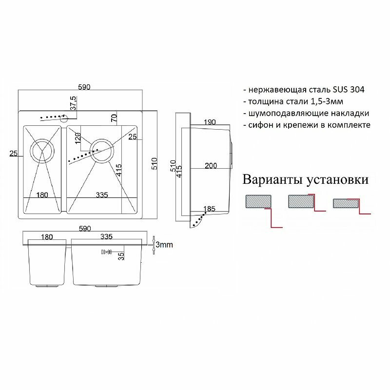 | Дополнительная информация | Комплектация: мойка кухонная; сливная арматура, крепления |