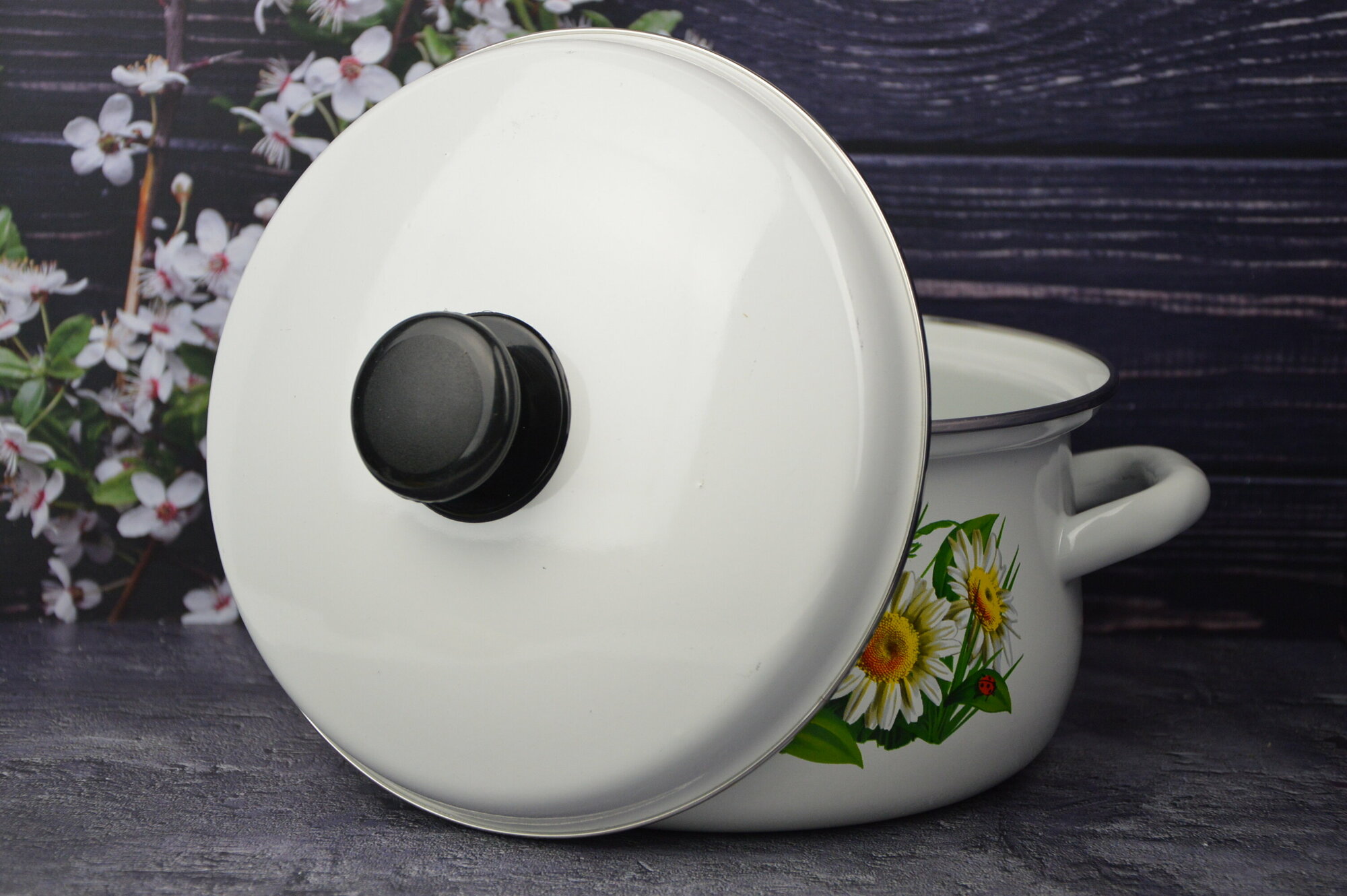 Ковш эмалированный 1,0 л с крышкой Подворье