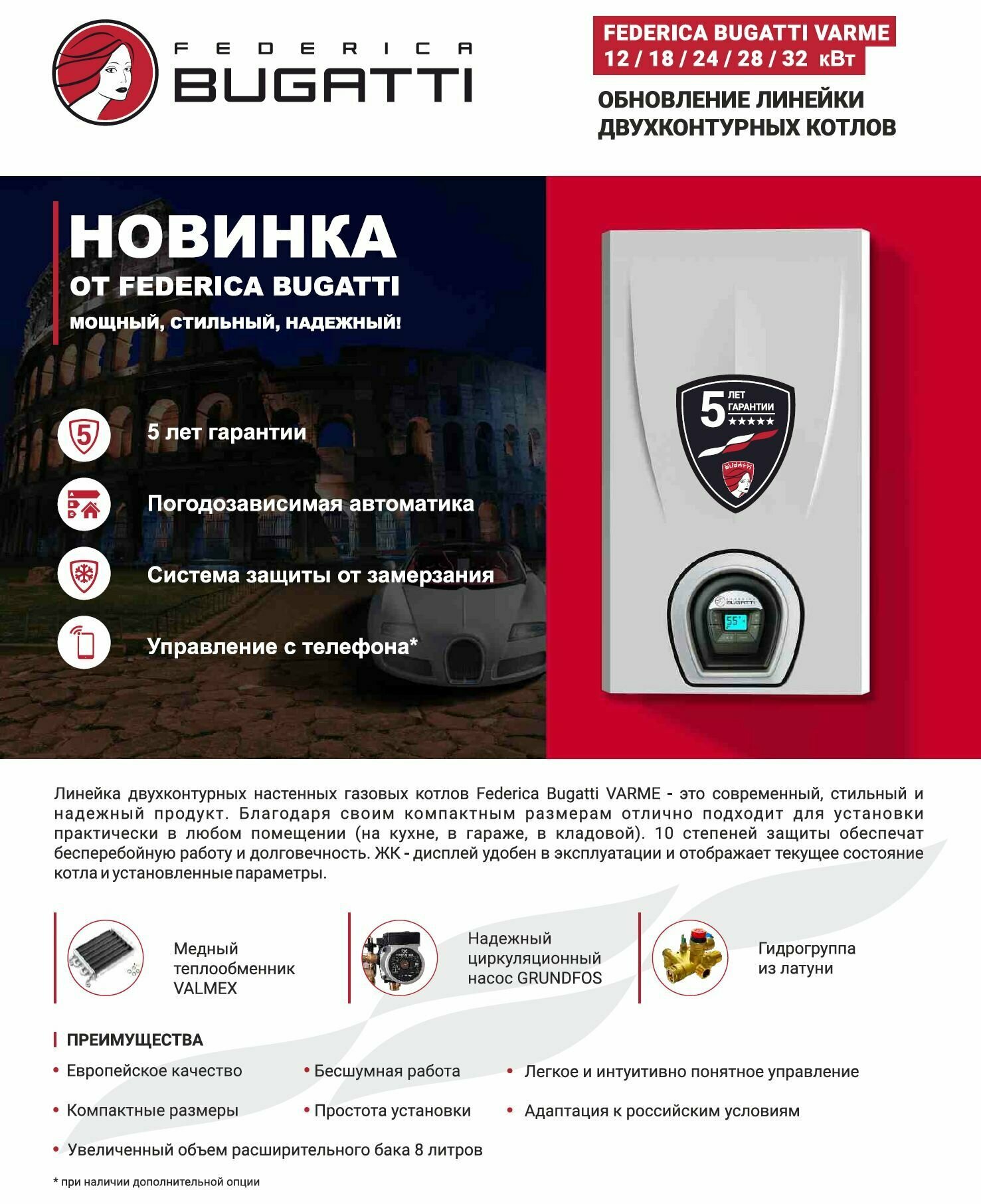 Настенный газовый котел Federica Bugatti 24 VARME 2х контурный информация: