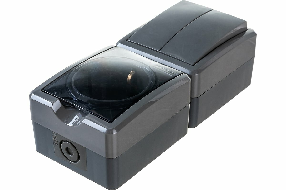 ЭРА Блок Эксперт 11-7602-03 накладной IP65 16А(10AX) 250В серый горизонтальный розетка с выключателем двухклавишн