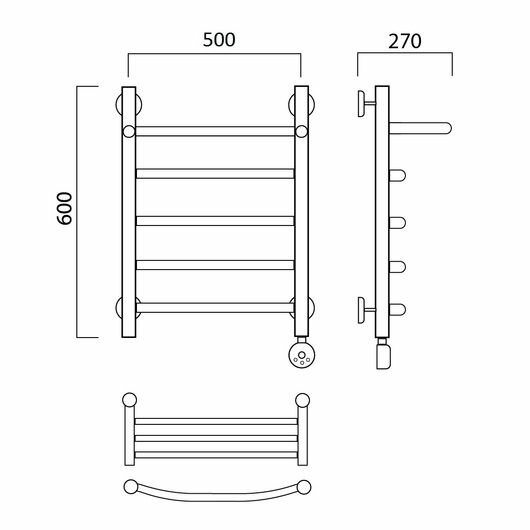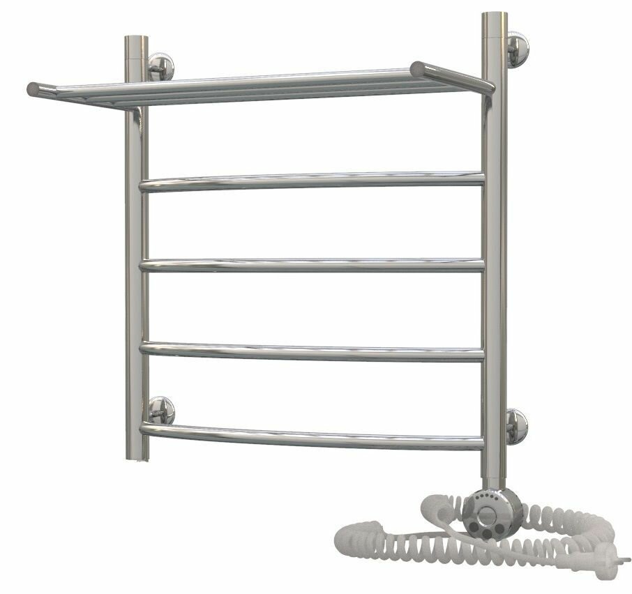 Полотенцесушитель электрический Акванерж Дуга с полкой 600х500 мм, 4 перекладины, левое подключение.