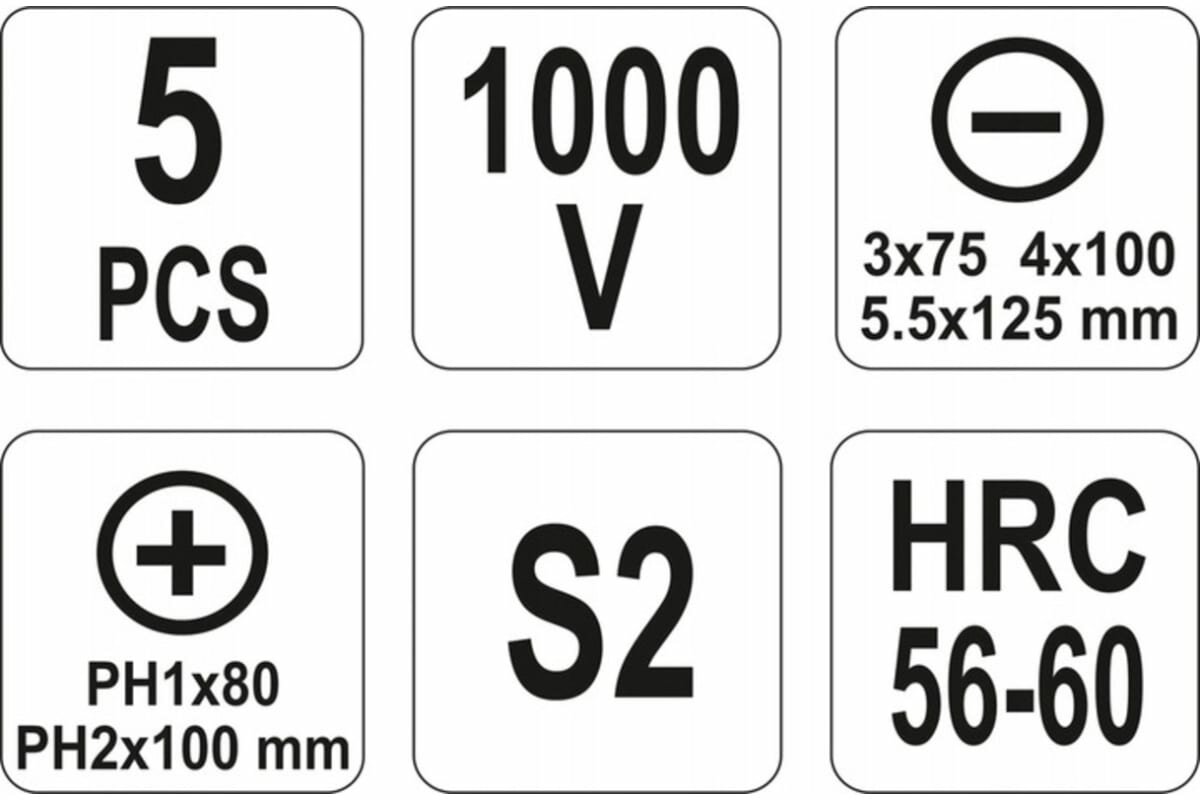 | Отвертки подробно | изолированные: SL3x75, SL4x100, SL5.5x125, PH1x80, PH2x100 |
