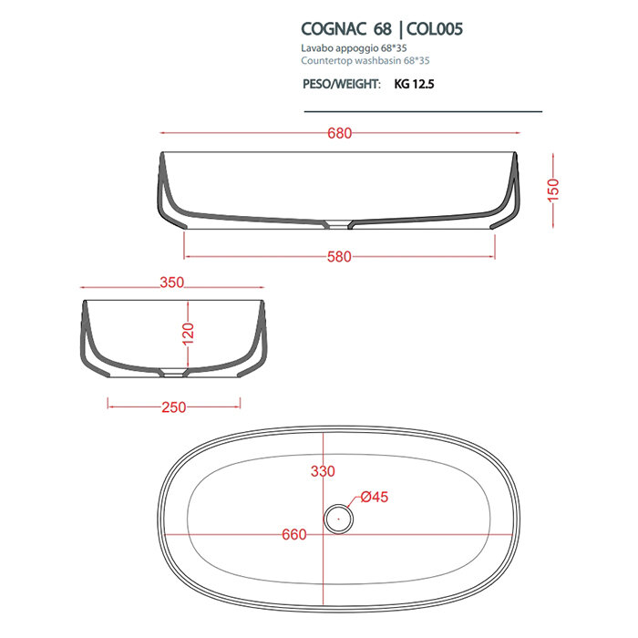 | Дополнительная информация | Комплектация | Раковина - 1 шт. ;Возможное основание под раковину | столешница;Гарантия | 5 лет;Гарантия | 5 лет;Расстояние от смесителя до слива, см | 21,5;Страна | Италия;Ширина, см | 68; |