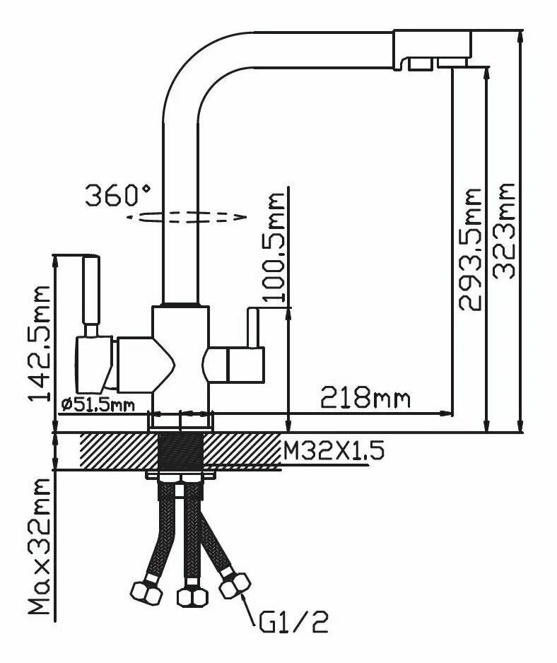 Смеситель для кухни с подключением к фильтру с питьевой водой из нержавеющей стали SUS304 Calorie CAL50116-3