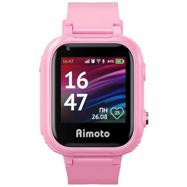 Детские смарт-часы Aimoto Pro 4G, 1.4", Gps, sim, камера, звонки, геозоны, Ip67, SOS,розовые Aimoto