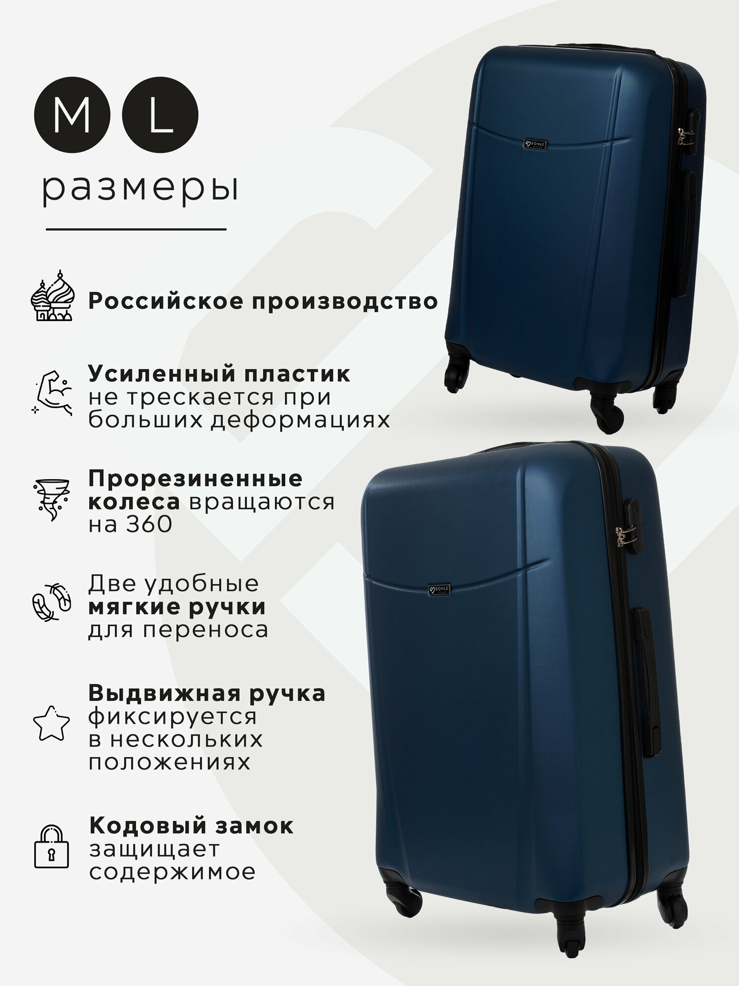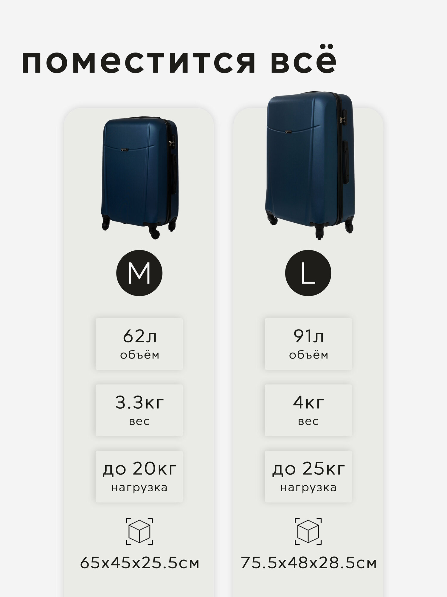 Комплект чемоданов 2шт, Тасмания, Темно-синий, размер L,M 75,5см, 65см, 91л, 65л дорожный средний и большой информация: