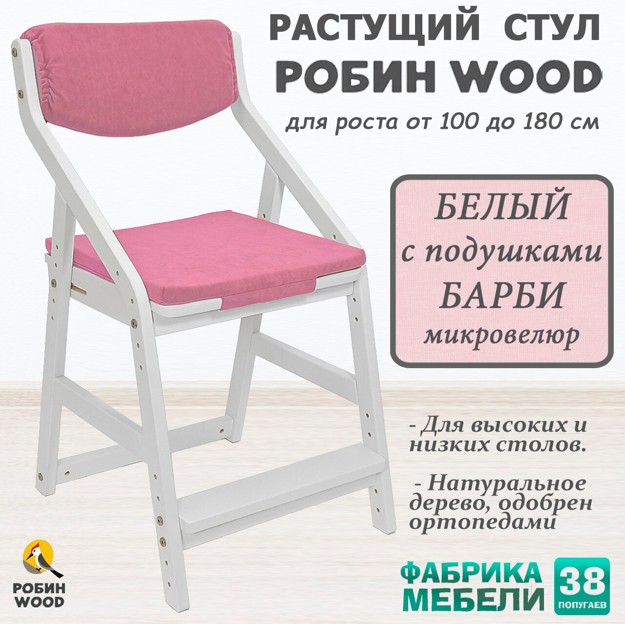 Растущий стул Робин Wood с подушками (38 Попугаев), цвет: Белый/барби информация: