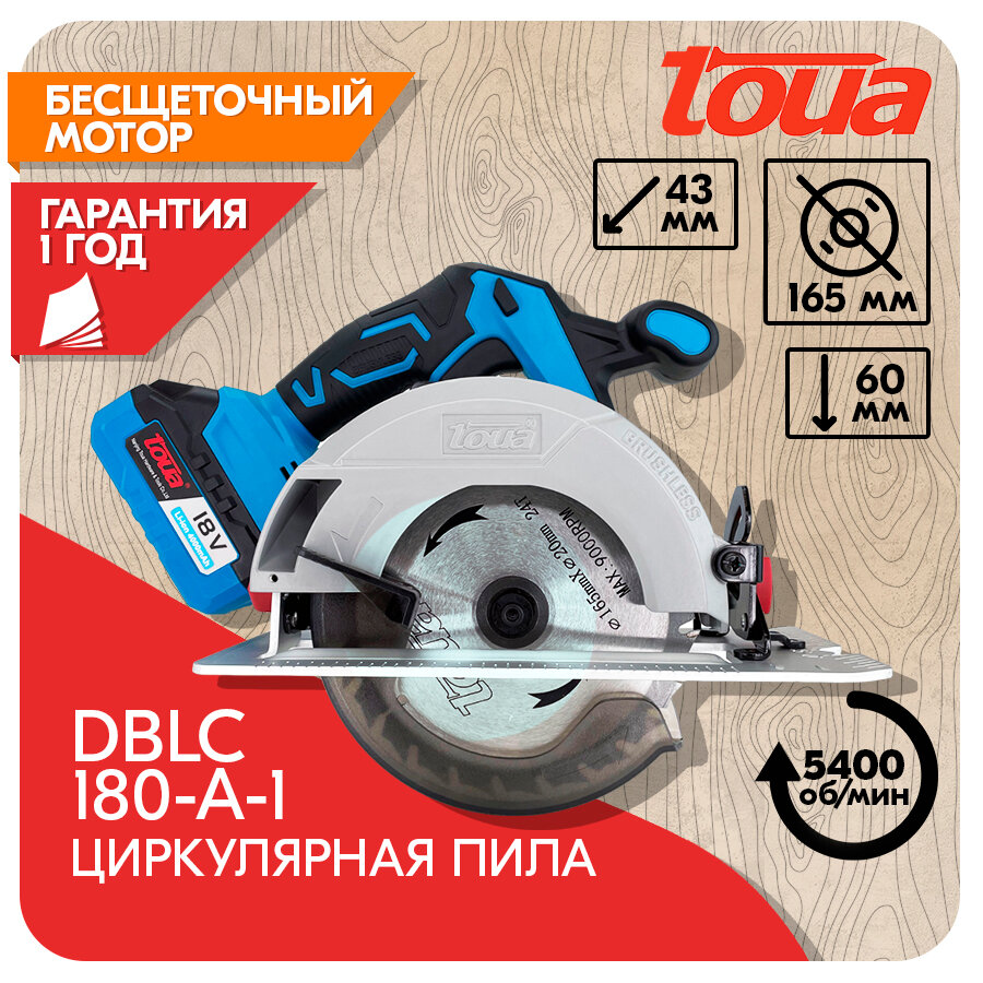 Отзывы на Циркулярная пила TOUA DBLC180-A аккумуляторная 18v 165мм, бесщеточный двигатель, гарантия 1 год