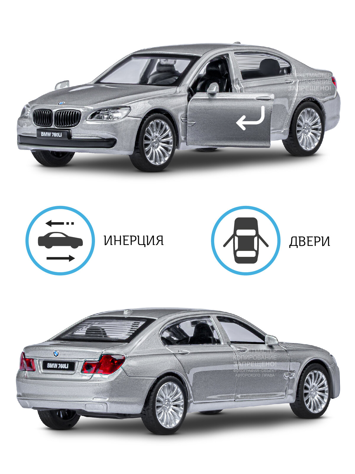 Машинка металлическая инерционная ТМ Автопанорама, BMW 760 LI, М1:46, серебряный, JB1251261 информация: