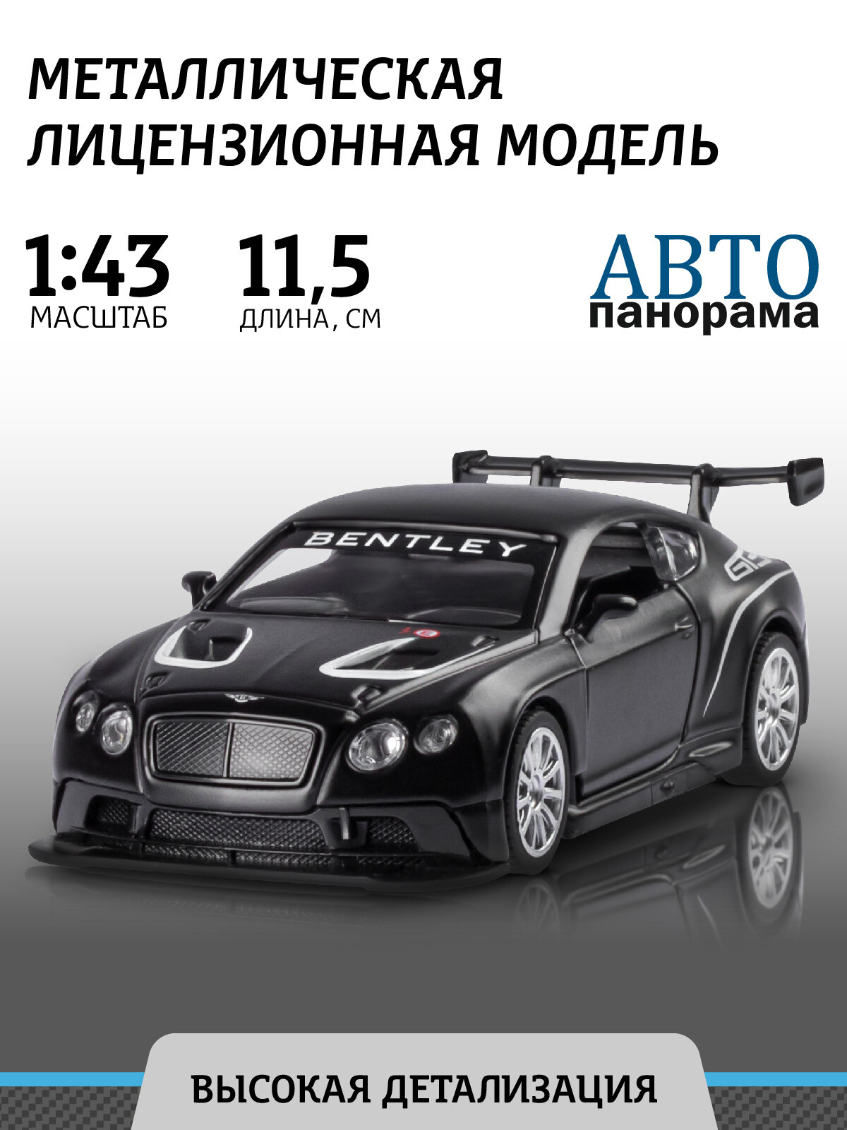 Отзывы на ТМ "Автопанорама" Машинка металлическая 1:43 Bentley Continental GT3, черный, откр. двери, инерция, в/к 17,5*12,5*6,5 см JB1251556
