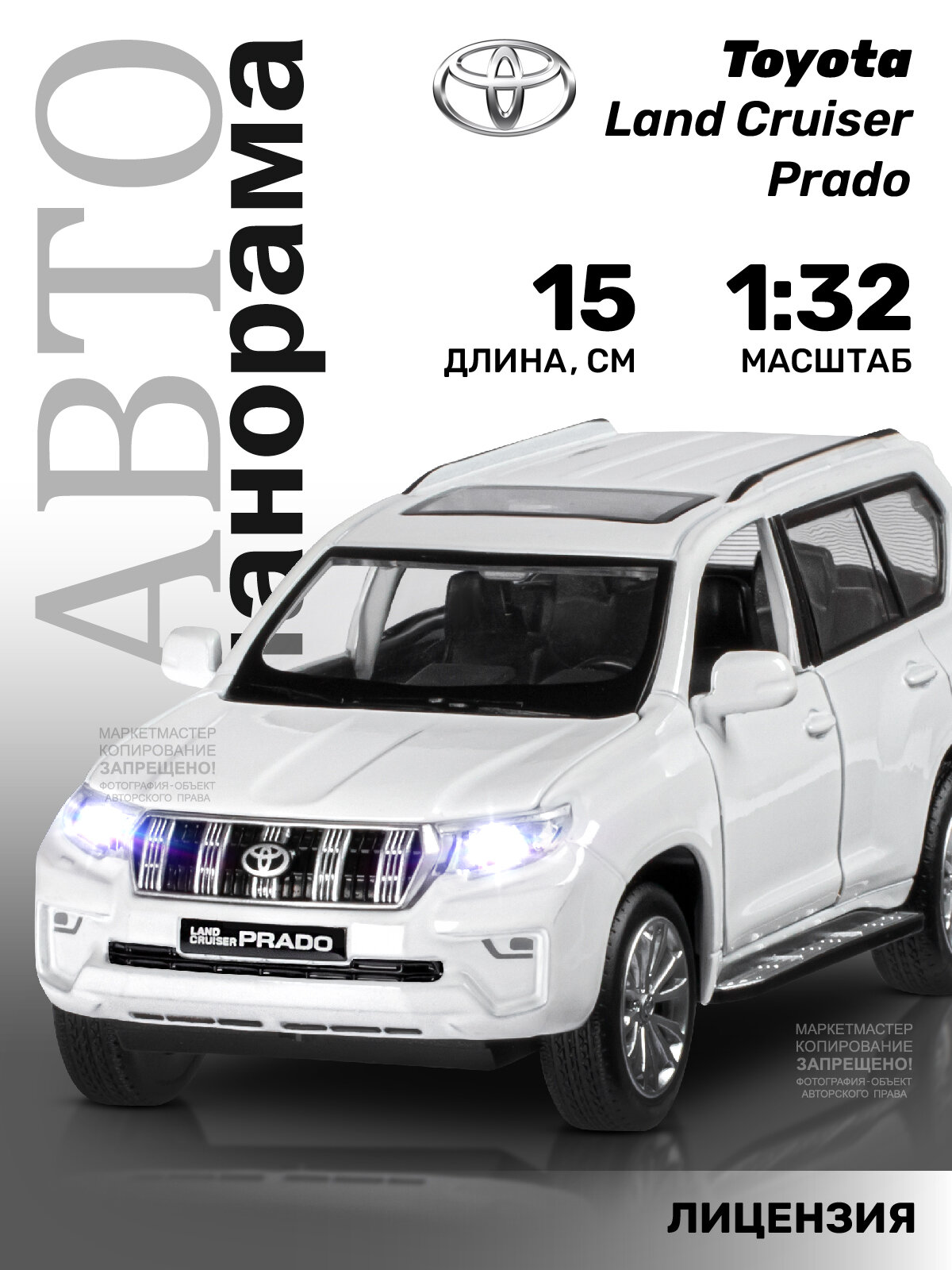 10 цен на ТМ "Автопанорама" Машинка металлическая 1:32 Land Cruiser Prado, белый, свет, звук, откр. двери, капот и багажник, инерция, в/к 17,5*13,5*9 см JB1251319