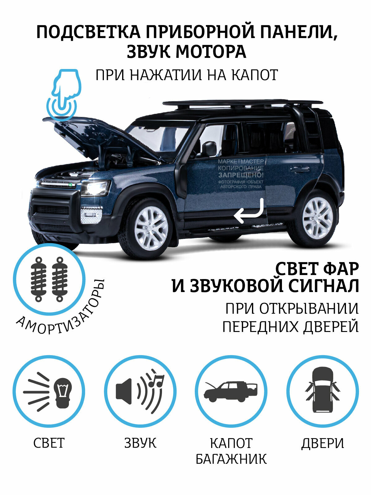 ТМ "Автопанорама" Машинка металлическая 1:32 Land Rover Defender 110, синий, откр.4 двери, капот, багажник, свет, звук, свободный ход колес, в/к 18*13,5*9 см JB1251534 2 808 ₽