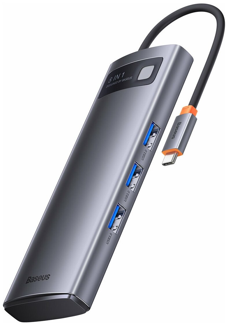 Отзывы на Хаб Baseus Metal Gleam Series 8-in-1 Multifunctional Type-C HUB Docking Station (Type-C - HDMI*2+USB3.0*3+PD*1+SD/TF*1) Серый (WKWG050113)