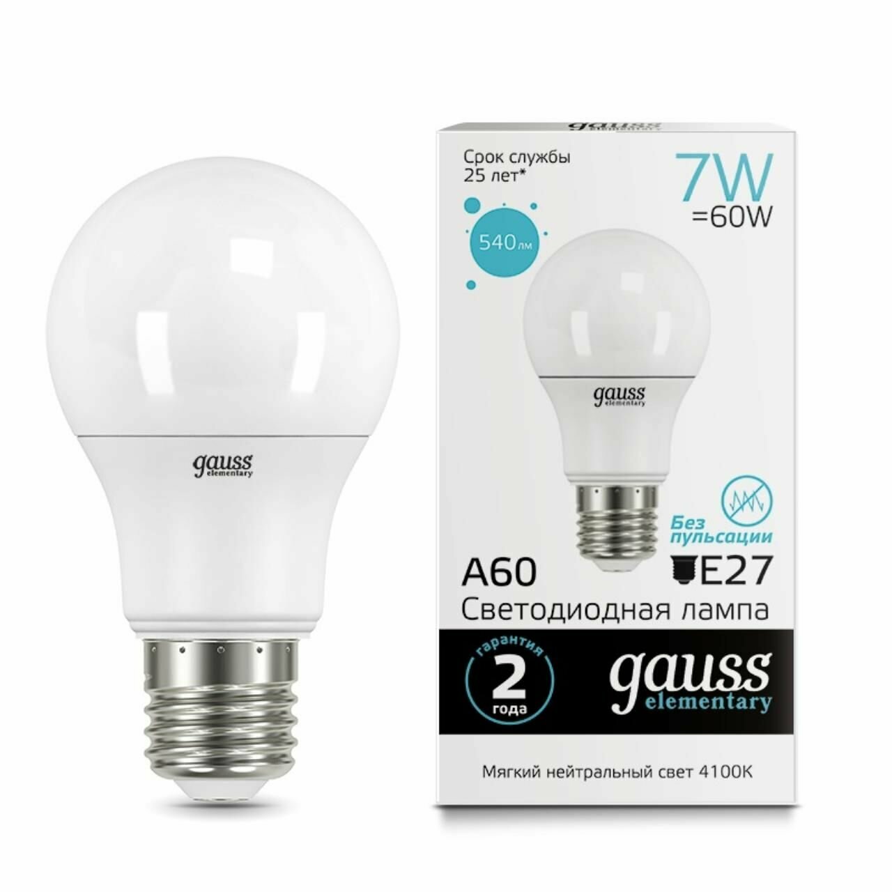 Светодиодная лампочка Gauss Elementary A60 4100K (7 Вт, E27) 10 шт. (23227A) информация: