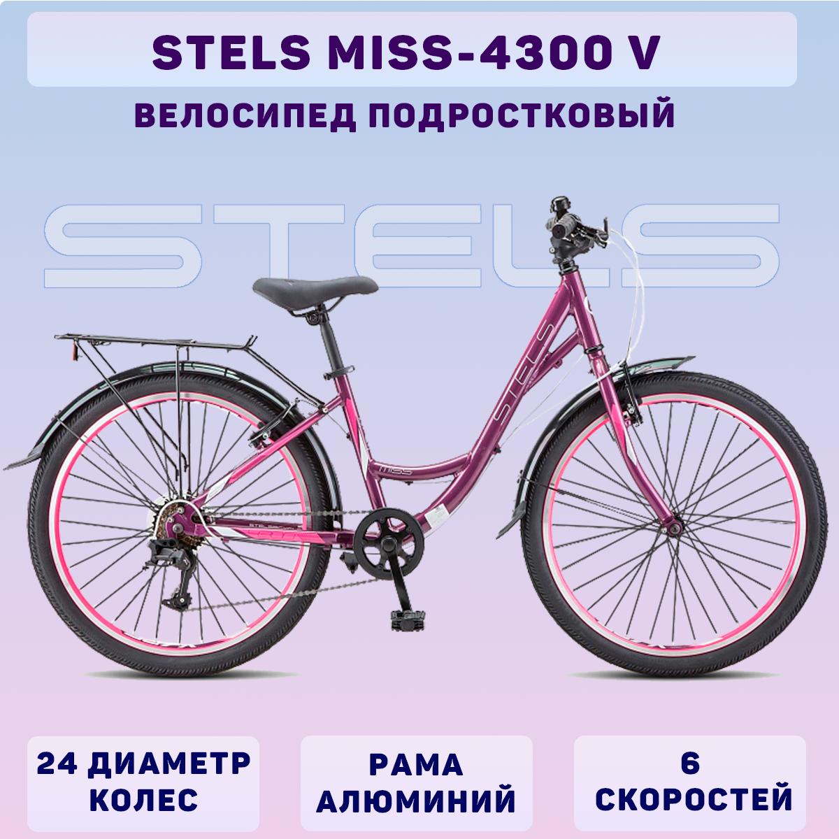 Отзывы на Подростковый велосипед Stels Miss 4300 V 24 V010, 14", фиолетовый/розовый, 2023