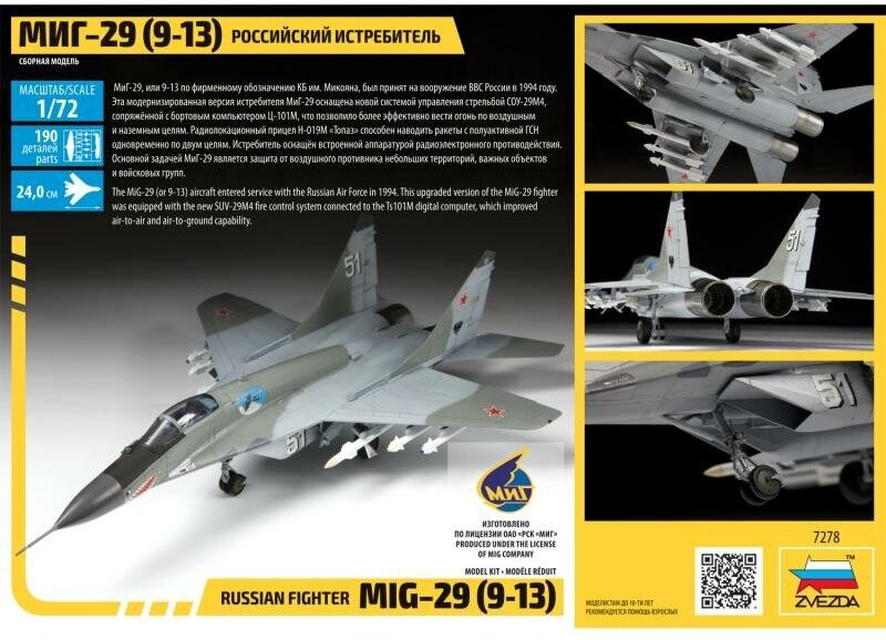 7278ПН Подарочный набор Российский истребитель МиГ-29 (9-13) информация: