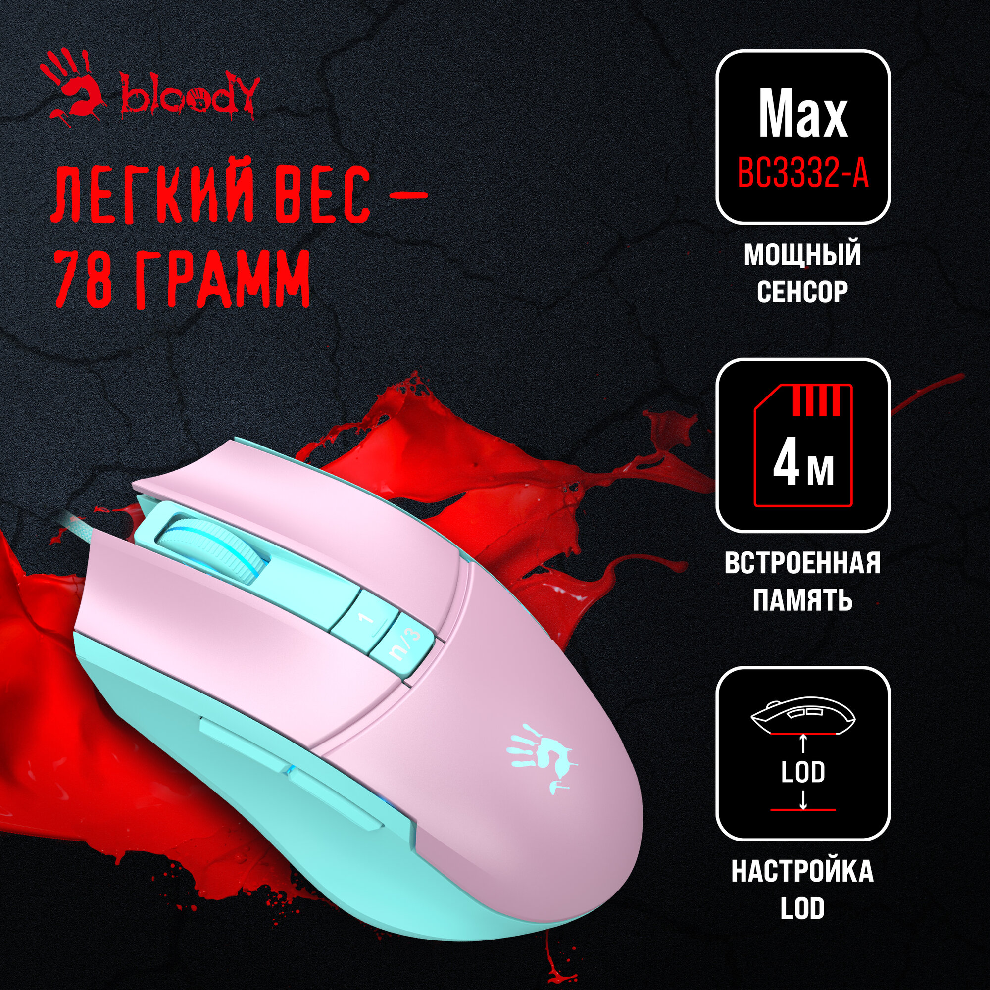 Мышь A4Tech Bloody L65 Max Pink-Light Blue информация: