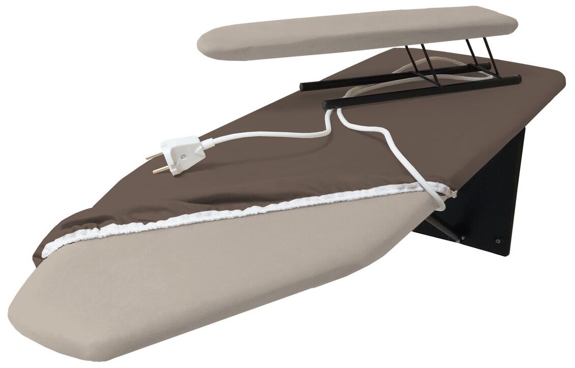 Волжаночка Гладильная доска настенная, встраиваемая в шкаф с подрукавником, съемным чехлом, розеткой и удлинителем, размер 87х30 см., цвет бежевый информация: