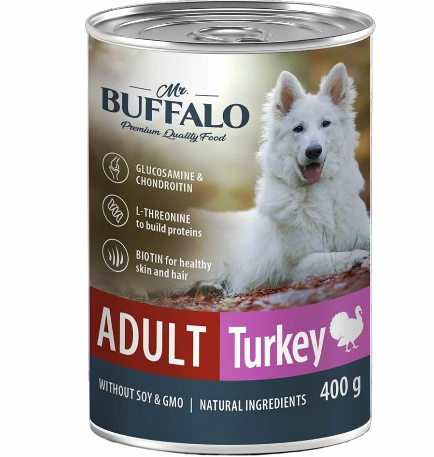 MR.BUFFALO ADULT DOG TURKEY для взрослых собак всех пород с индейкой банка 400 гр NEW 400 гр х 6 шт