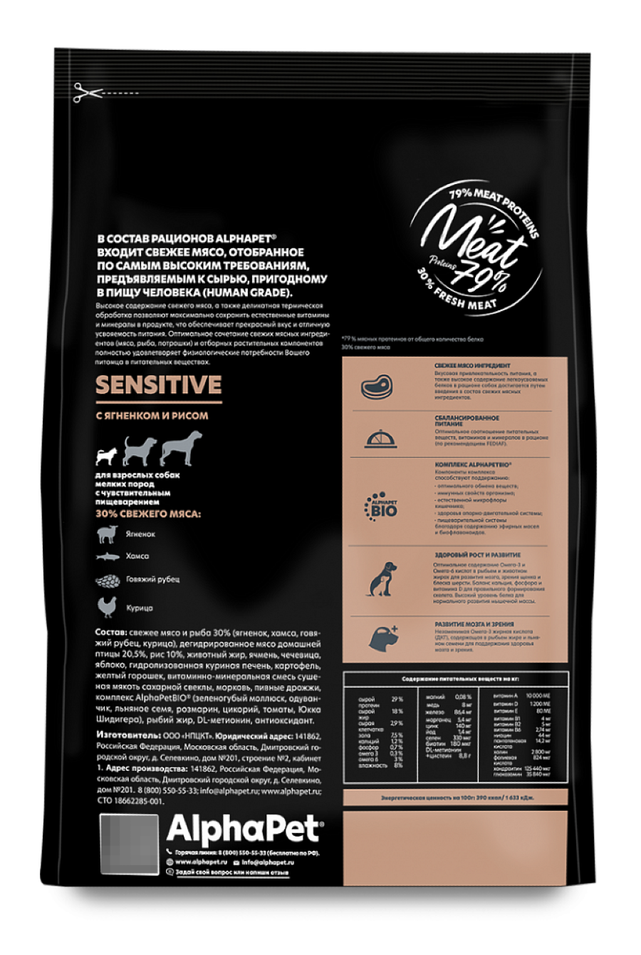 AlphaPet Сухой полнорационный корм Superpremium с ягненком и рисом, для взрослых собак мелких пород с чувствительным пищеварением, 500 гр информация: