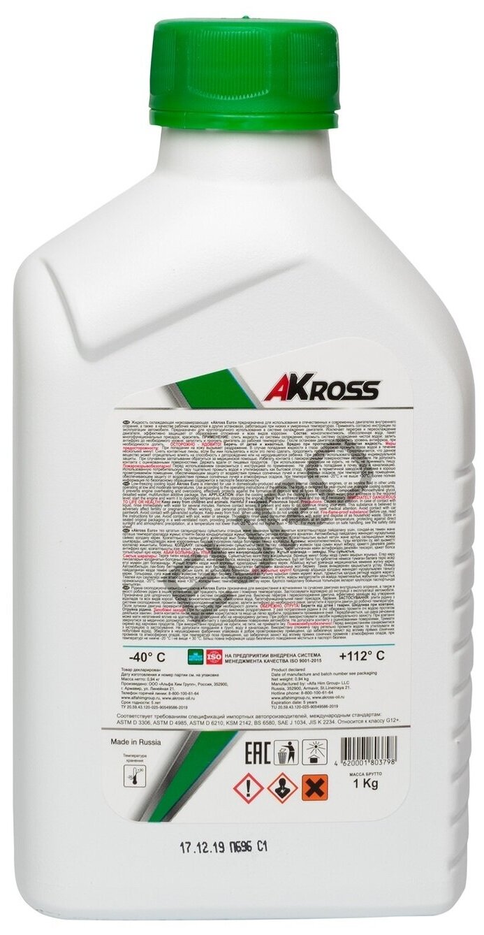 Антифриз AKross Euro G11 зеленый -40°С 1 кг 361 ₽