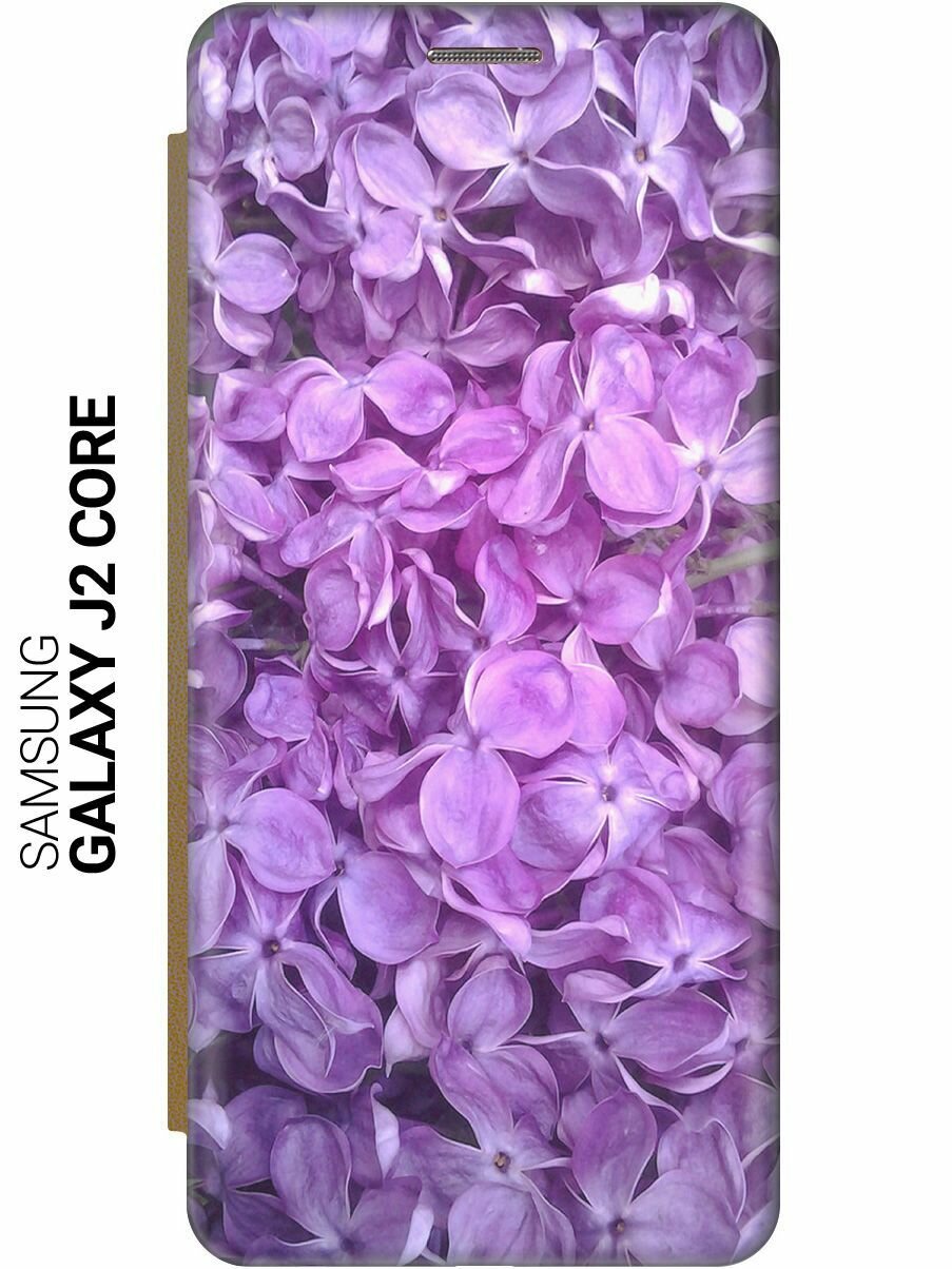 Чехол-книжка на Samsung Galaxy J2 Core, Самсунг Джей 2 Кор c принтом "Цветы сирени" золотистый информация: