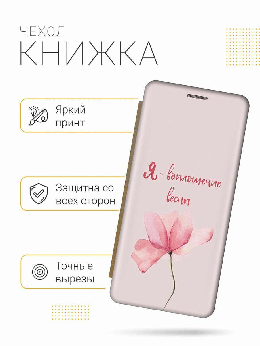 Отзывы на Чехол-книжка на Samsung Galaxy J2 Core, Самсунг Джей 2 Кор c принтом "Я - воплощение весны" золотистый