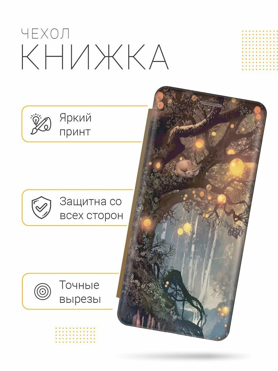 Отзывы на Чехол-книжка на Samsung Galaxy J2 Core, Самсунг Джей 2 Кор c принтом "Лиса на древе" золотистый
