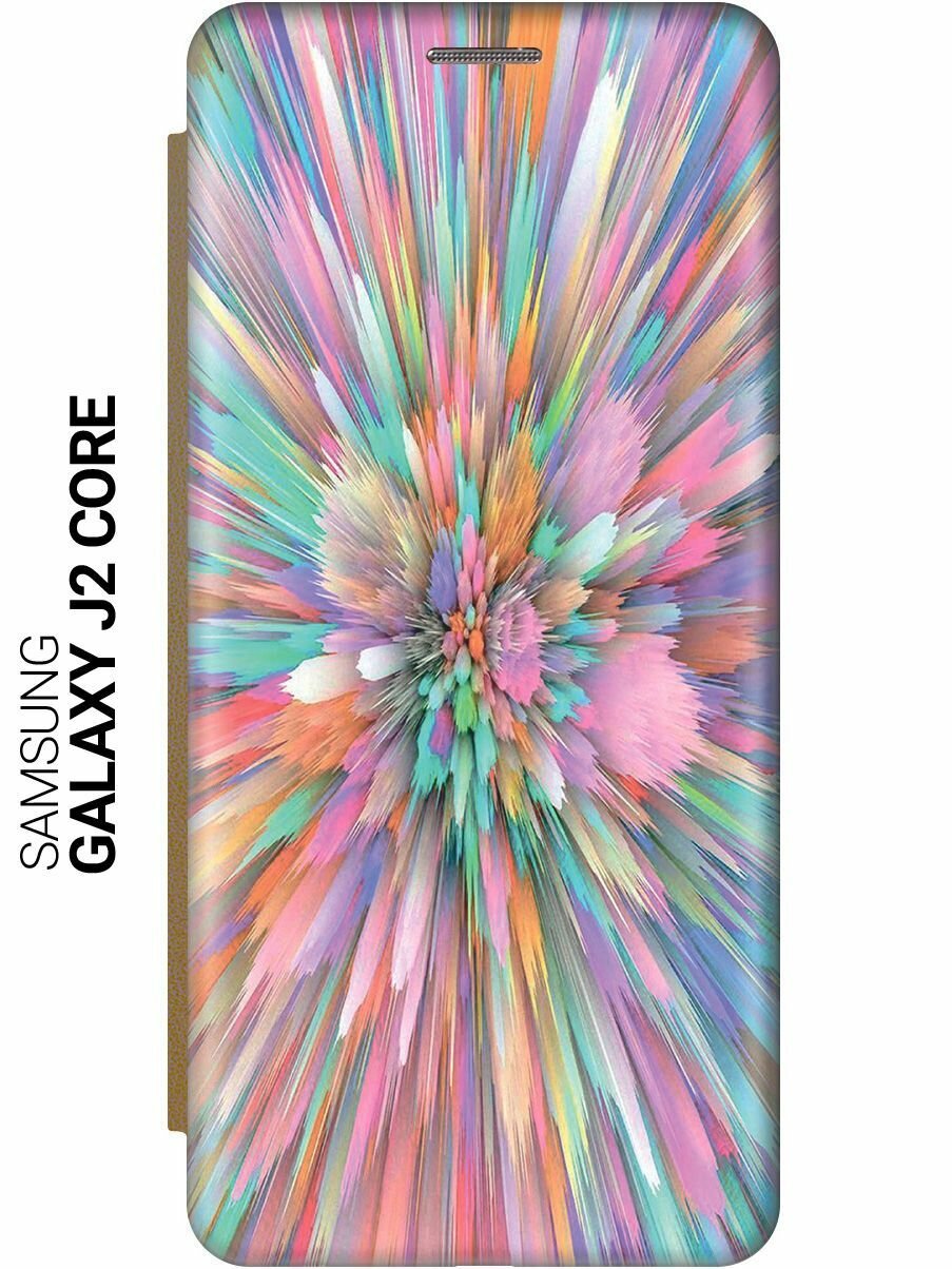 Чехол-книжка на Samsung Galaxy J2 Core, Самсунг Джей 2 Кор c принтом "Красочный взрыв" золотистый информация: