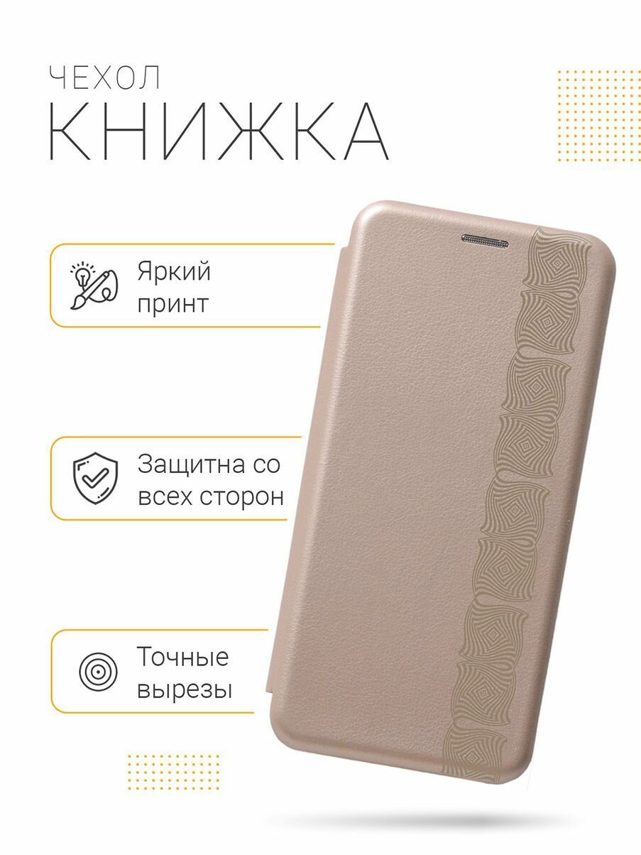 Отзывы на Чехол-книжка на Samsung Galaxy J2 Core, Самсунг Джей 2 Кор с 3D принтом "Charming Line" золотистый