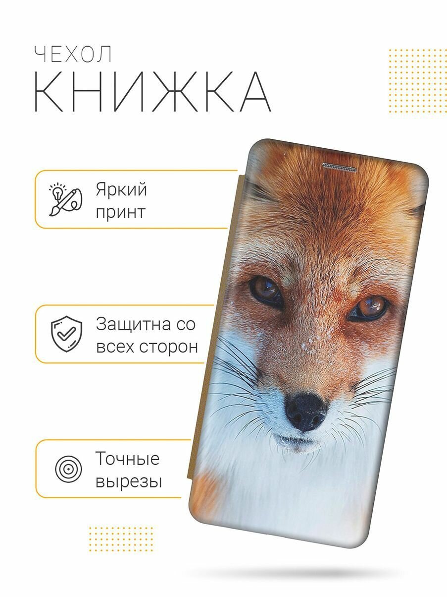 Отзывы на Чехол-книжка на Samsung Galaxy J2 Core, Самсунг Джей 2 Кор c принтом "Спокойный лис" золотистый