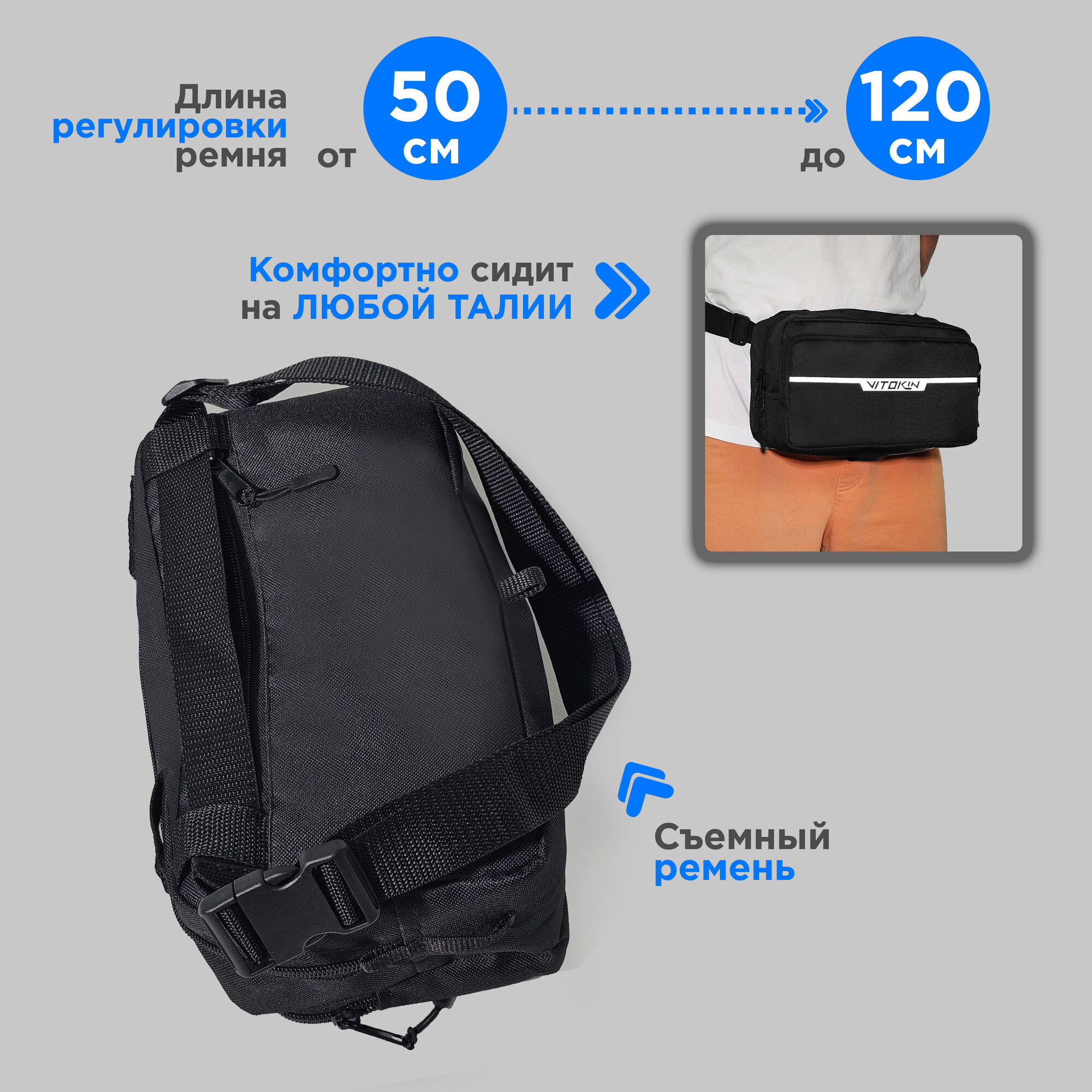 Велосумка на руль спортивная с ремнем для пояса VITOKIN, черная информация: