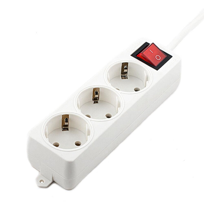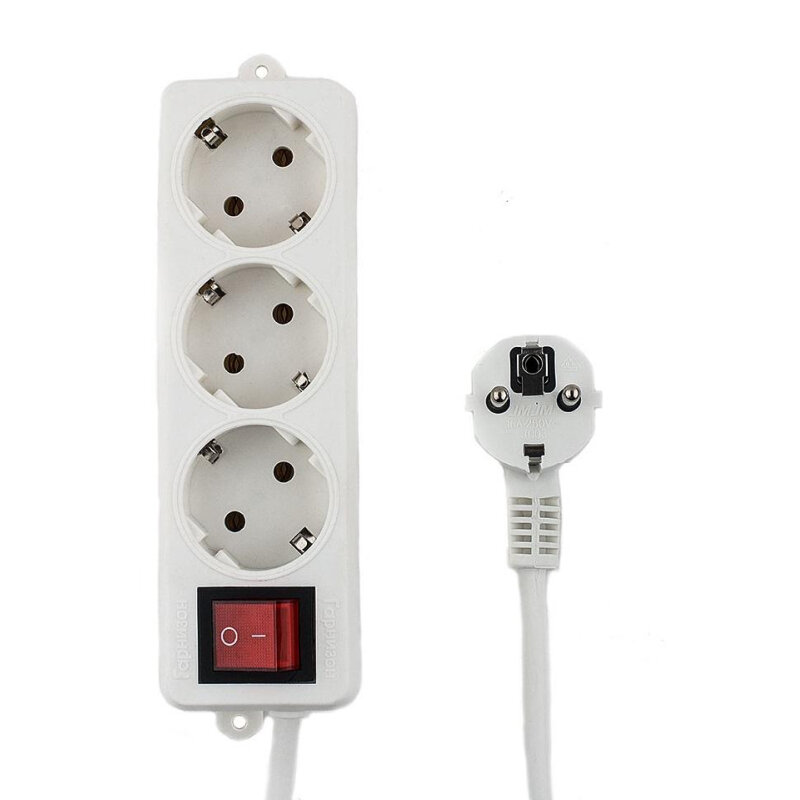 Удлинитель Гарнизон 3 евророзетки с выключателем и заземлением, длина 2м. ELB-G3-W-2