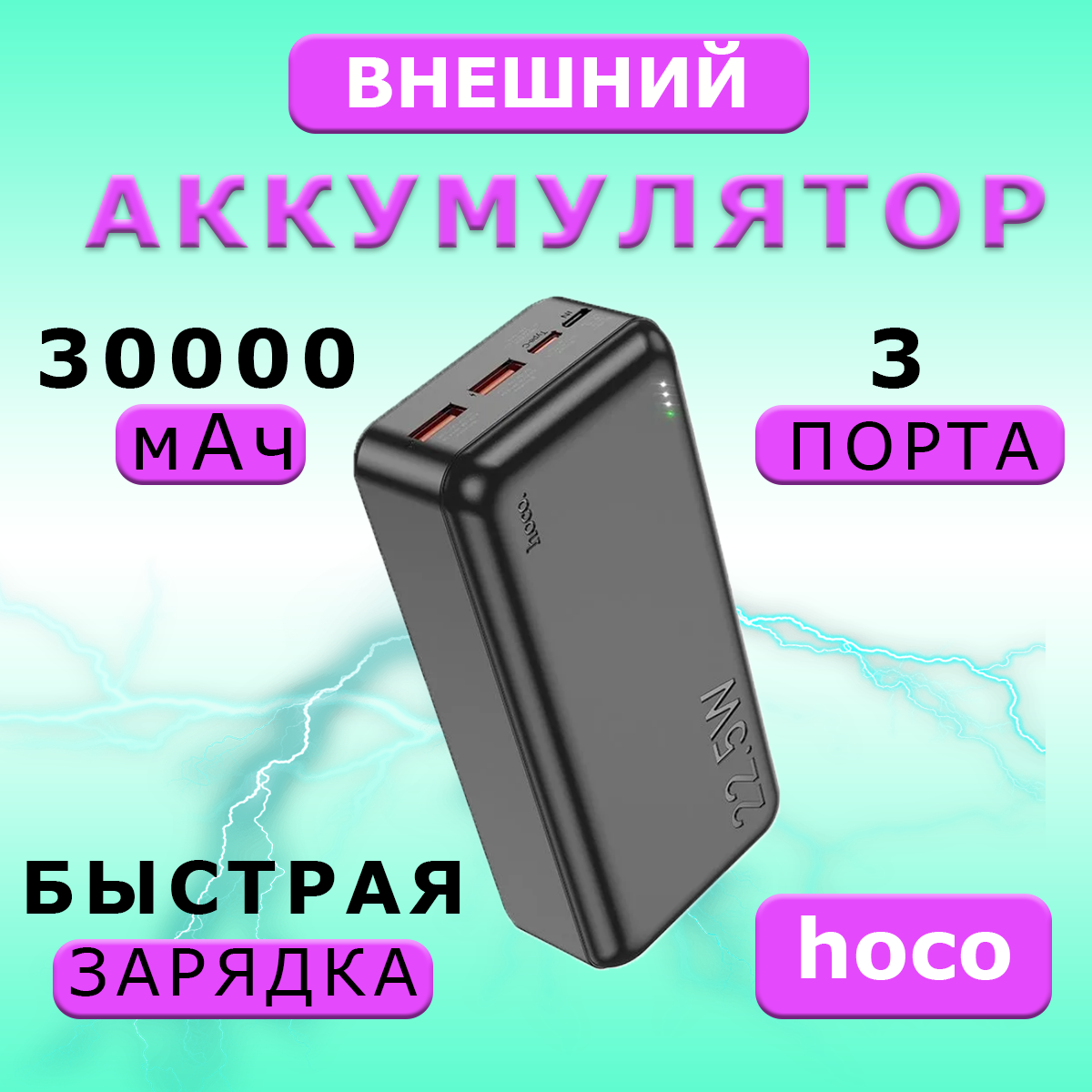 Универсальный Доп. Аккумулятор 30000mAh, J101B, HOCO, выход: 2 USB (22.5W)+1 PD (20W), черный 2 898 ₽