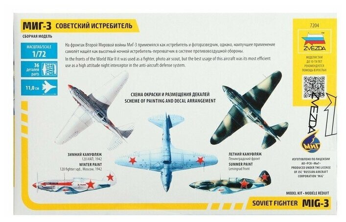 Сборная модель-самолёт «Советский истребитель МиГ-3», Звезда, 1:72, (7204) информация: