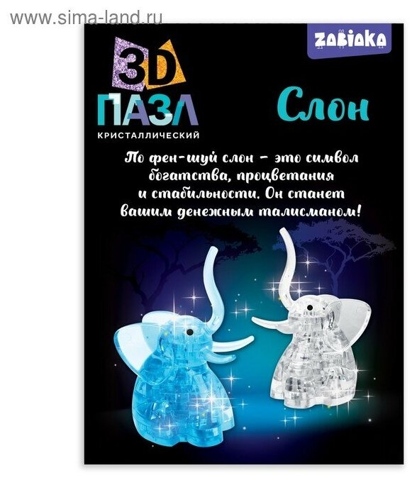 10 цен на 3D пазл «Слон», кристаллический, 20 деталей, цвета микс (комплект из 6 шт)