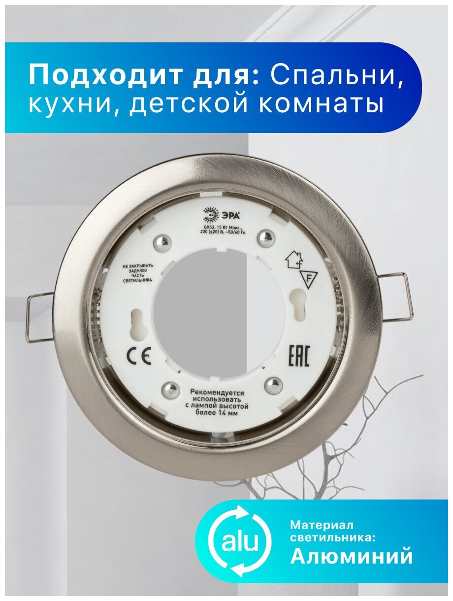 Отзывы на Светильник ЭРА под лампу Gx53,220V, 13W,сатин никель KL35 SN-10 арт. Б0033035 (10 шт.)