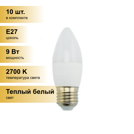 Лампочка светодиодная Свеча 9W, цоколь Е27, 2700k, Ecola Premium, 10 штук информация: