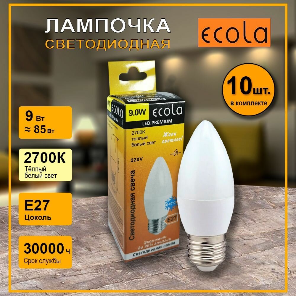 10 цен на Лампочка светодиодная Свеча 9W, цоколь Е27, 2700k, Ecola Premium, 10 штук