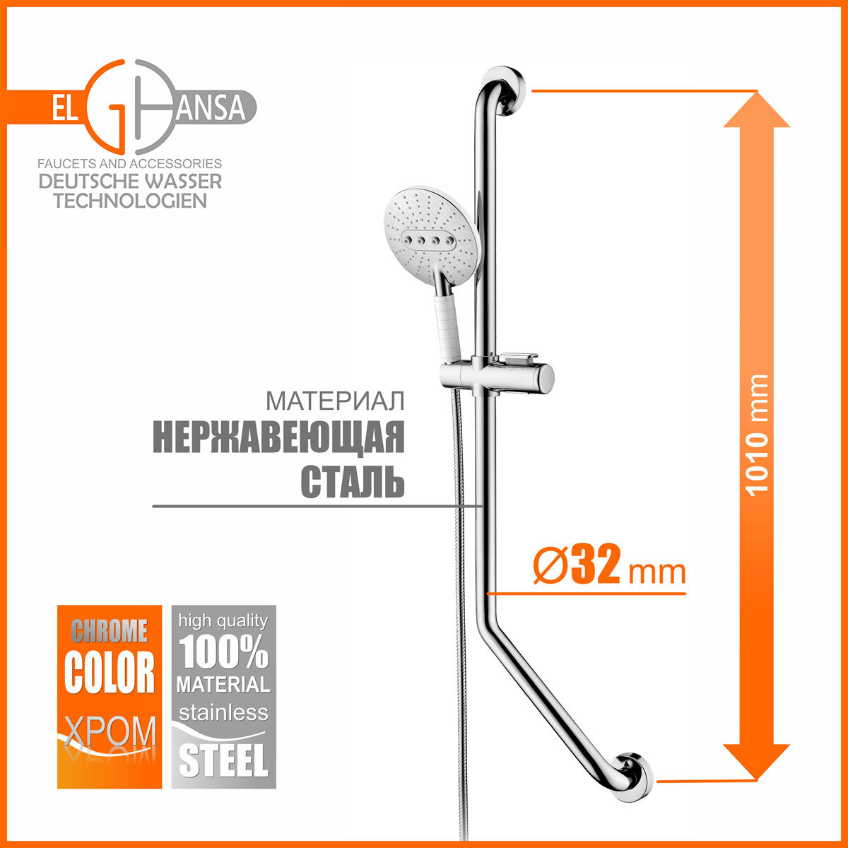 Штанга-поручень 90° ELGHANSA SB-329 с шлангом и лейкой 9 600 ₽