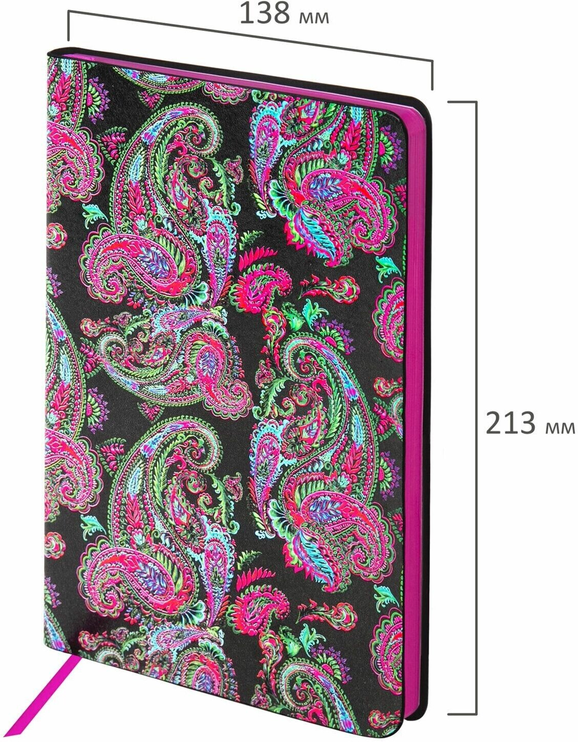 Ежедневник недатированный А5 (138х213 мм), BRAUBERG VISTA, под кожу, гибкий, 136 л, "Paistley", 112039