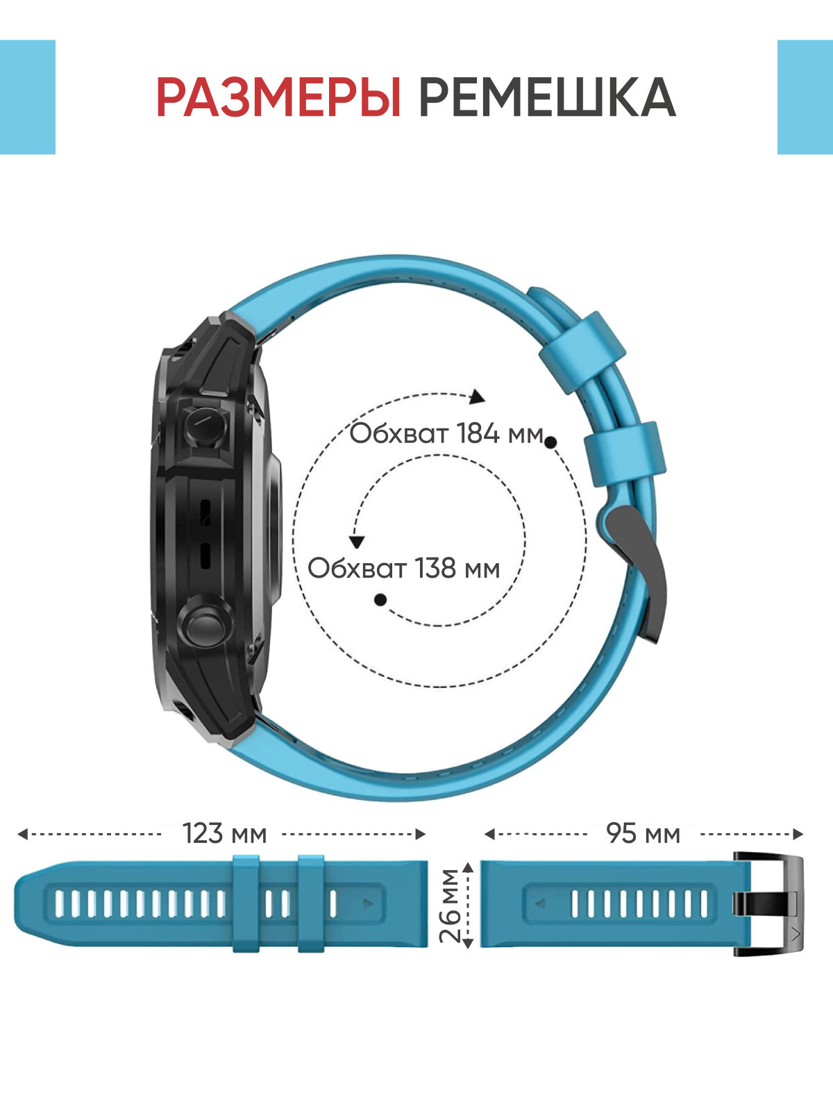 Силиконовый ремешок на часы Garmin Fenix 7X, 6X, 5X, 3, Garmin Enduro, Tactix Delta премиум качество голубой информация: