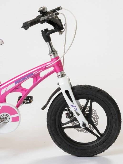 Велосипед детский 14" Rook Hope, розовый, 3-4 лет, рост 100-105 см, длина внутреннего шва ноги 40-45 см. Легкая магниевая рама, фривил.