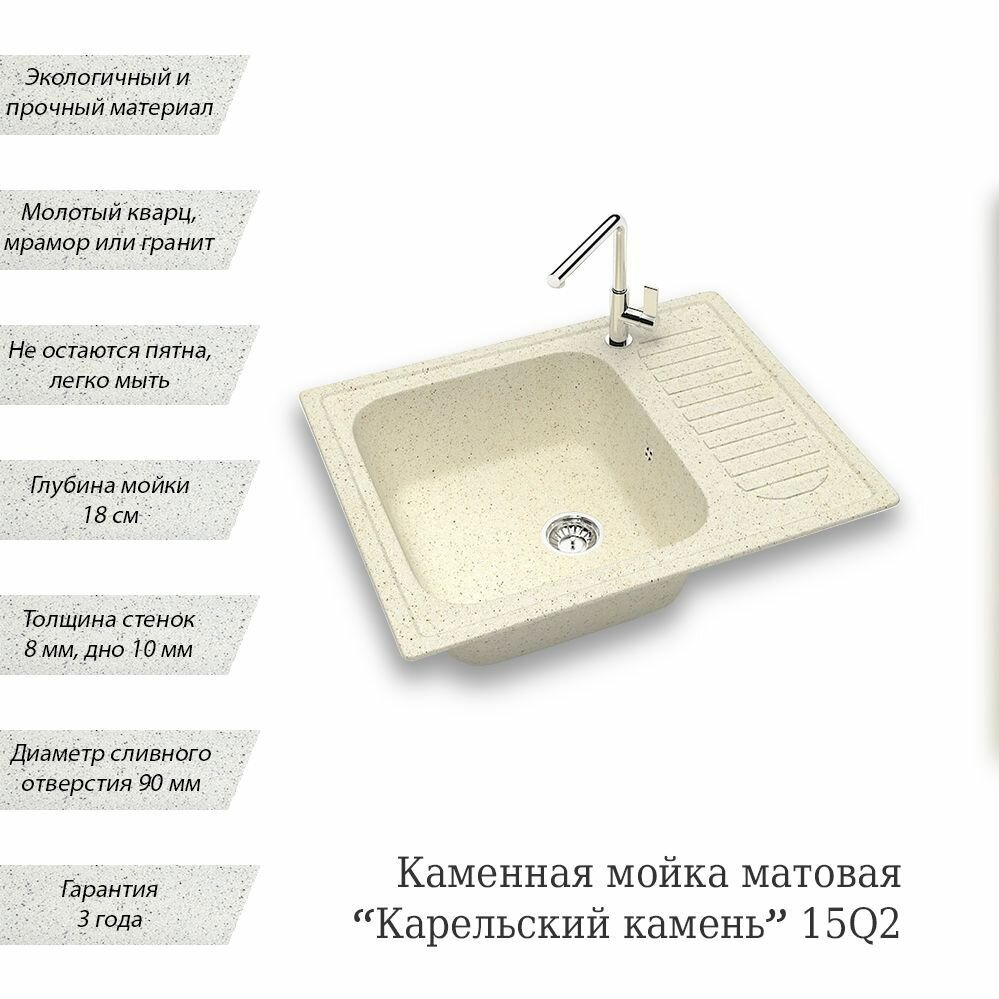 Кухонная мойка из искусственного камня 15/Q2 Бежевый 635x490x195мм информация: