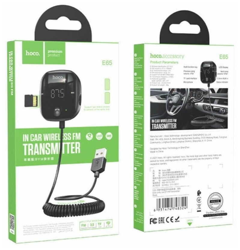10 цен на FM-трансмиттер Hoco. E65 Bluetooth, Handsfree.TF card