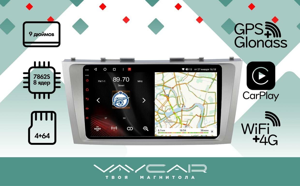Магнитола Vaycar 09VO4 для TOYOTA Camry V40 2006-2011 (Андроид, 4+64, 8 ядер, WiFi, BT, 4G, GPS, QLED 9") информация: