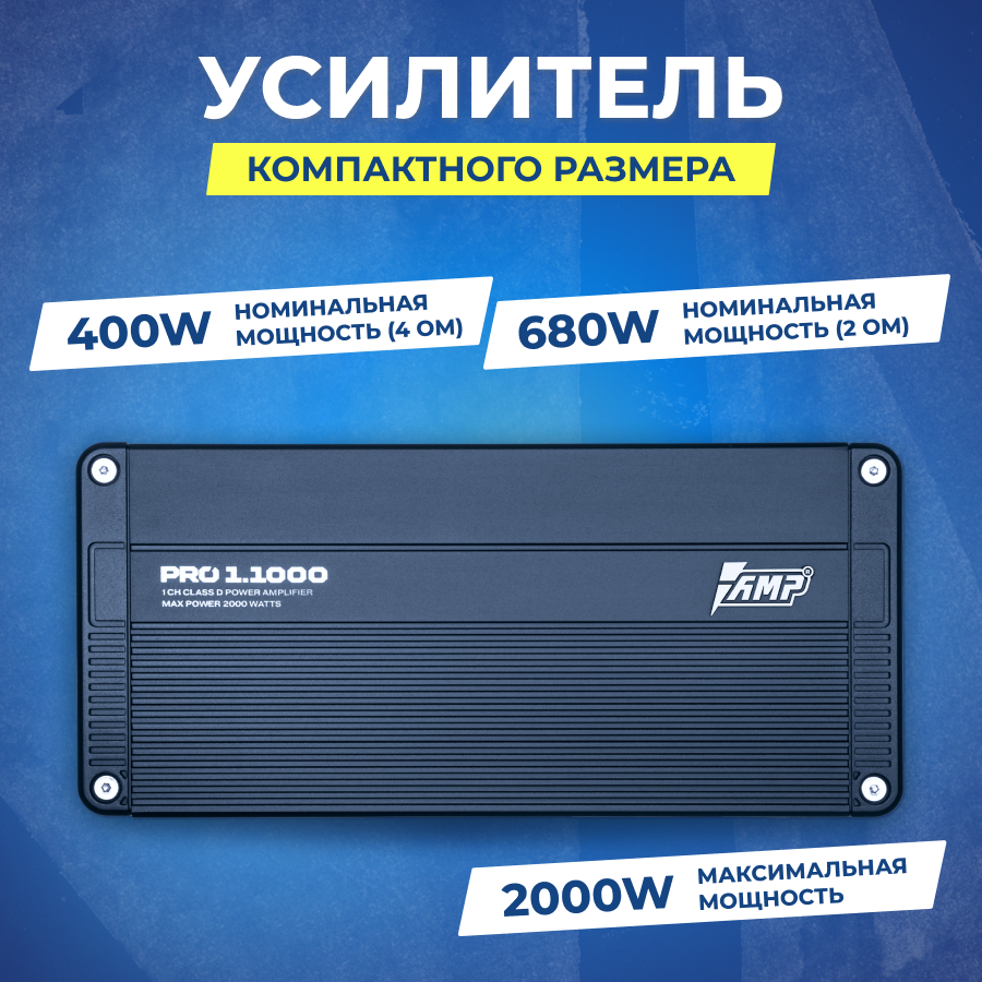 1-канальный автомобильный усилитель AMP PRO 1.1000 информация: