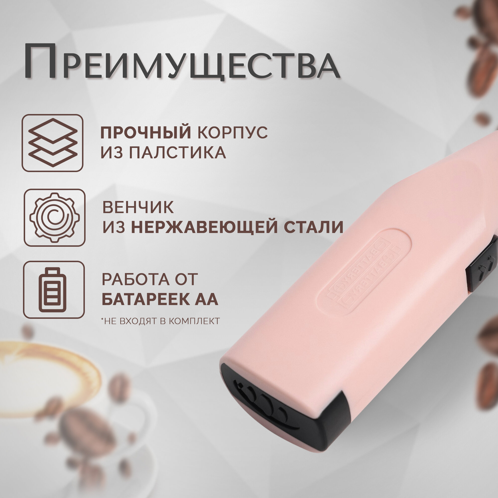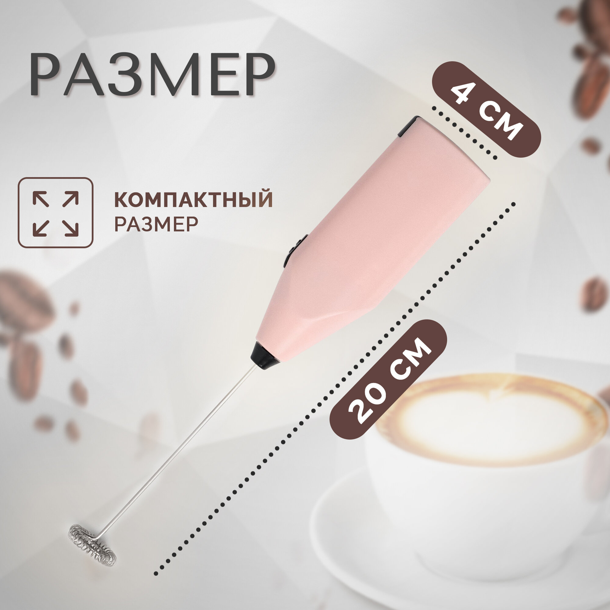 Капучинатор электрический на батарейках , вспениватель для молока 20×4×2,5 см цвет розовый