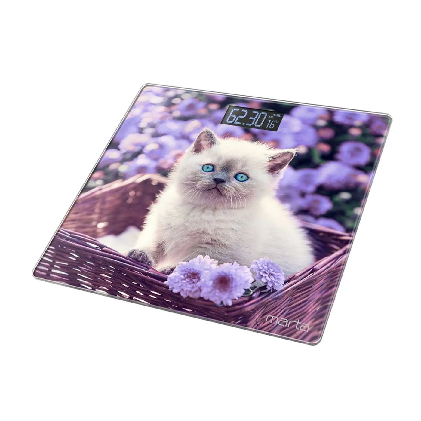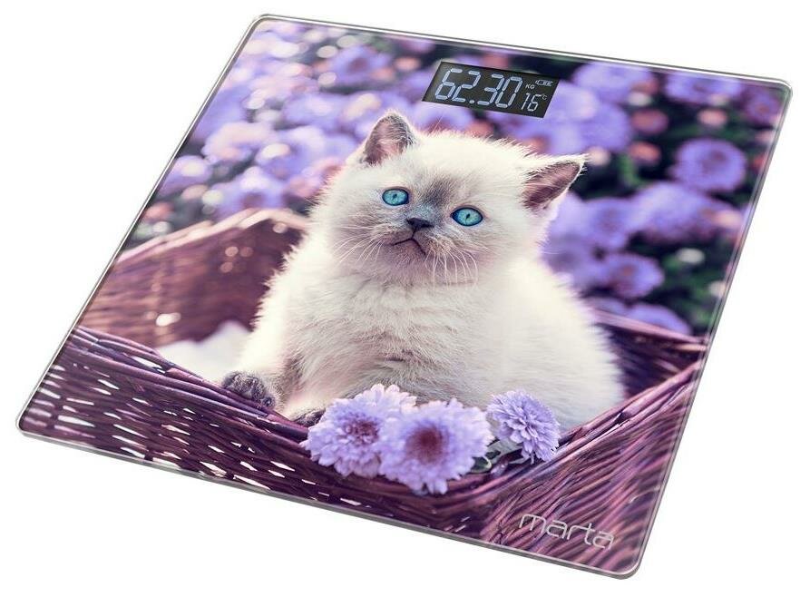 Весы напольные MARTA MT-1608 сенсор/встроенный термометр/белый котенок информация: