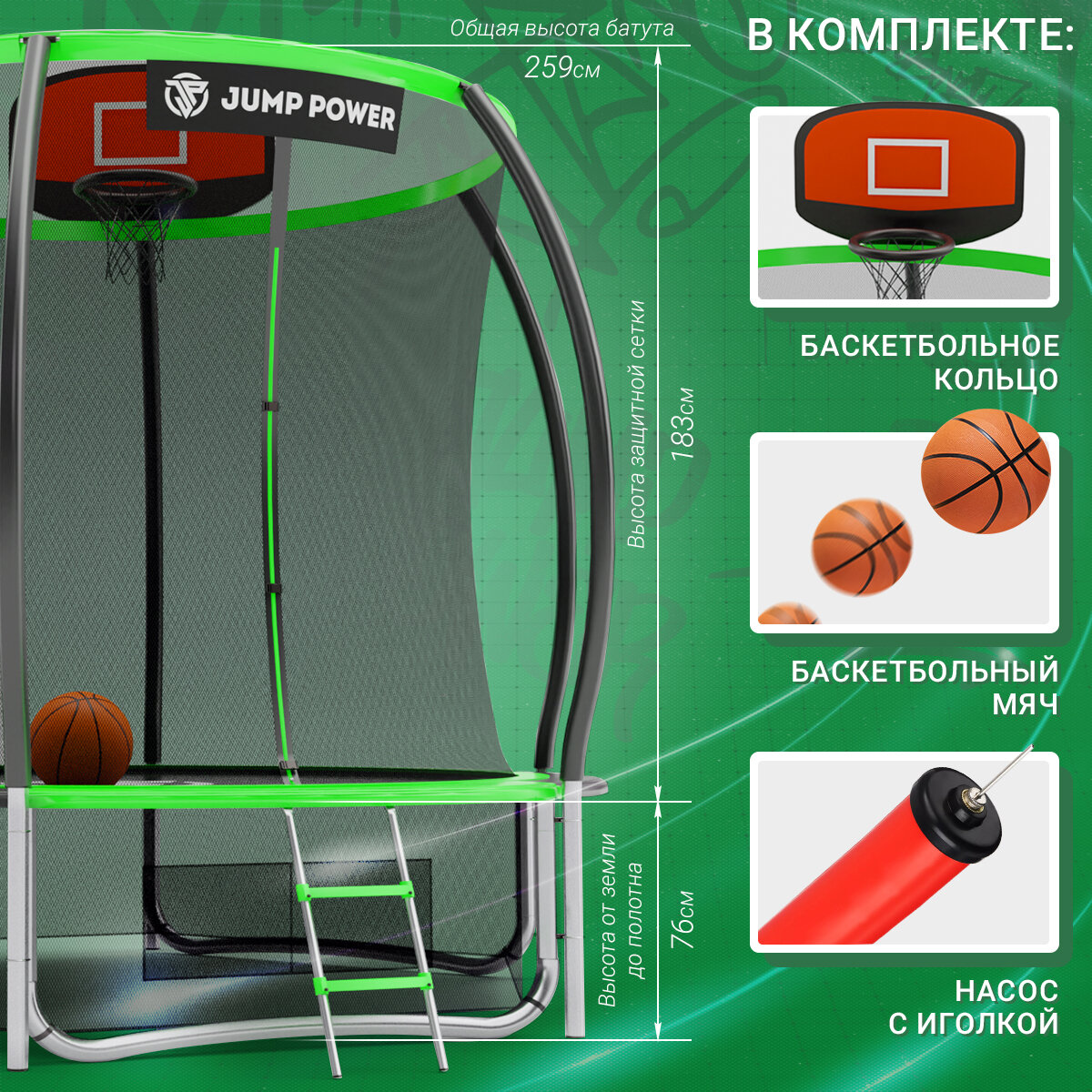 10 цен на Батут каркасный детский Jump Power 306 см с защитной сеткой для детей/ игровой комплекс/баскетбольное кольцо+мяч/ максимальная нагрузка 150кг